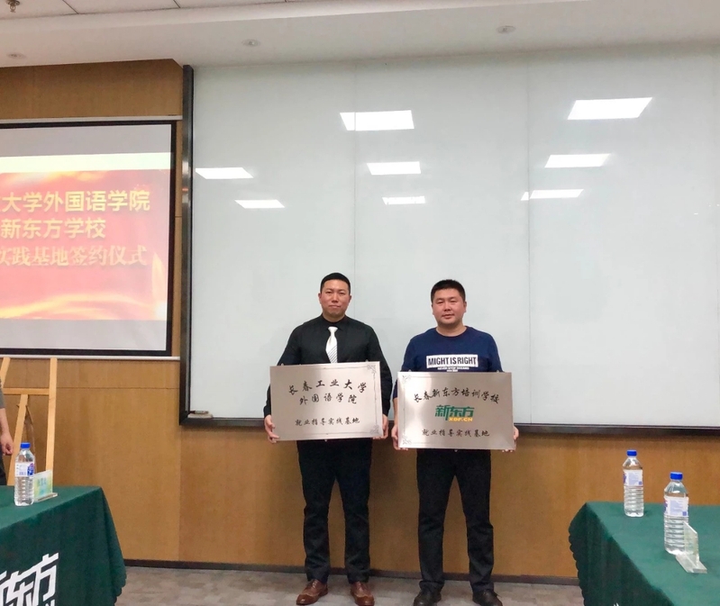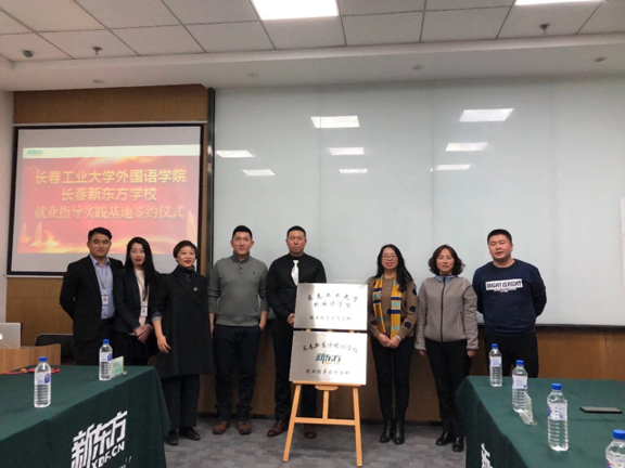 接着,双方达成一致并签订就业指导实践基地协议。最后,举行了揭牌仪式,由彭又新院长、王颖群书记、边昆老师、吴博老师共同揭牌。仪式结束后,新东方学校领导带领我院领导参观了长春新东方学校。