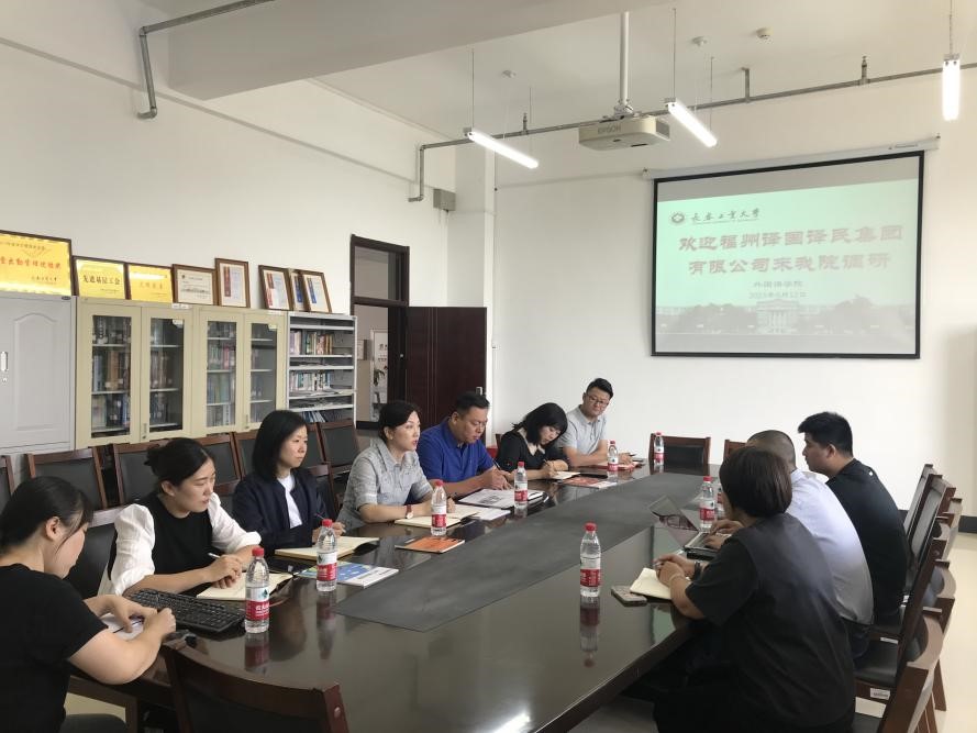 (通讯员 王婷)为拓宽学生实习实践基地和就业岗位,9月12日,学院邀请福州译国译民集团有限公司来院洽谈交流合作。yl6776永利集团党委书记张子宇、院长王轶、党委副书记于伟、副院长李秀文、曾妍及学生辅导员参加了洽谈会。