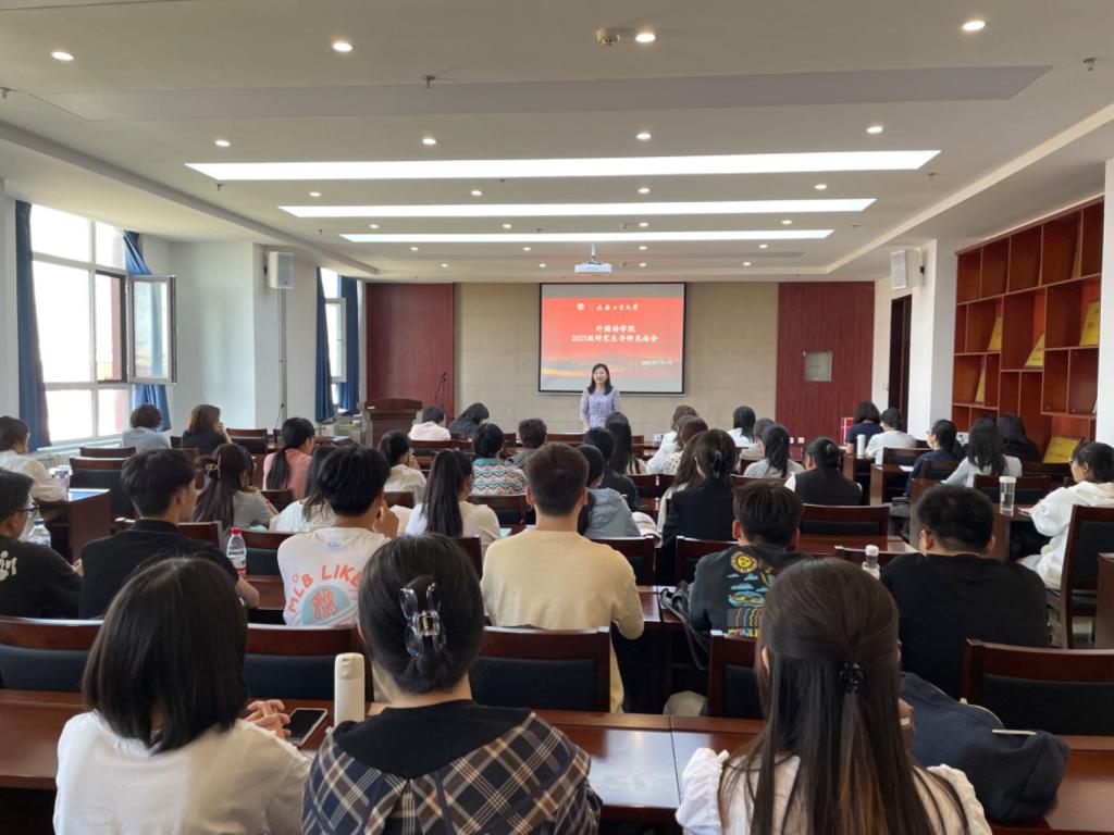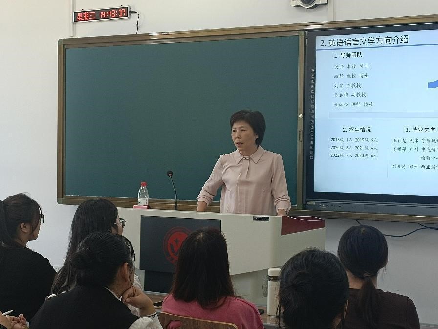导师见面会后,副院长曾妍、英语系主任刘宇、俄语系张微老师分别给四个专业的研究生开展了“新生入学教育”,详细介绍了各专业的师资力量、培养方案、课程设置、社会实践活动、学生就业情况等,指导研究生明确学习目标,制定合理的个人培养计划。