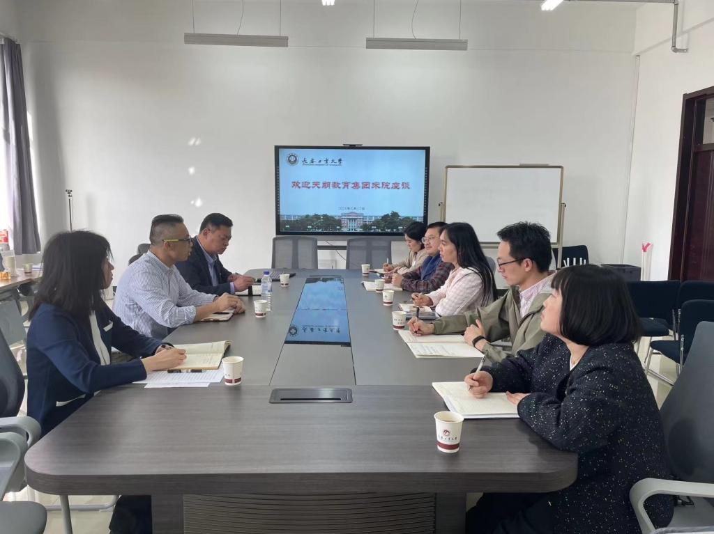接着双方就校企合作和学生实习实践等一系列问题展开深入讨论。我院在培养学生过程中,始终坚持理论课程学习与实践教学相结合的理念,未来可以通过与湛江天朗教育科技有限公司的深入合作,为我院学生提供南下广州实习实践的岗位,共同为社会、为国家培养出素质过硬、本领高强的综合性人才。