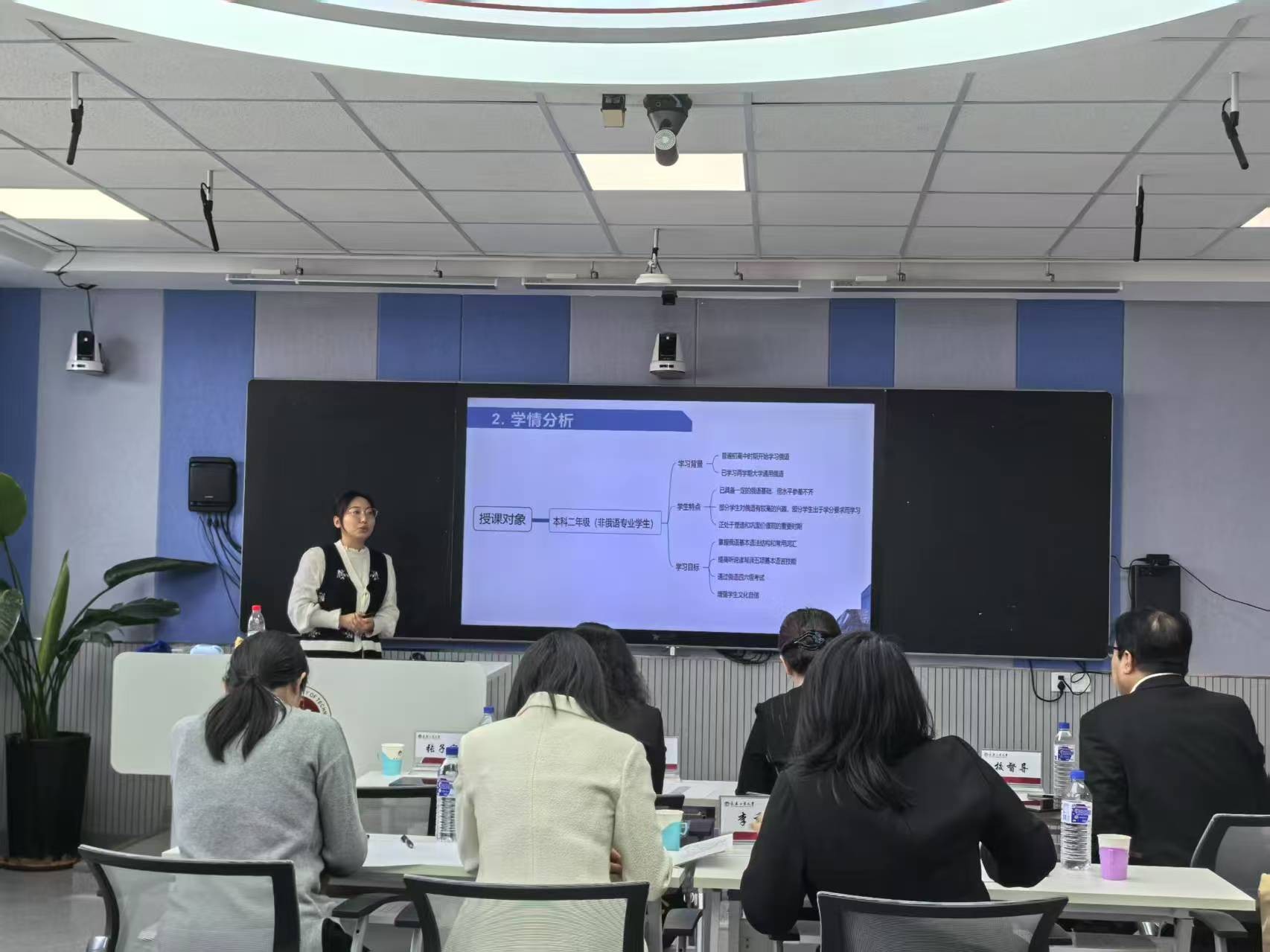 评委对参训教师的教学技能给予了充分肯定,并提出了待改进之处。校督导在点评中表示,参训教师的教学设计不仅逻辑清晰,而且实现了课程思政元素的有机融合,体现了鲜明的育人导向,展现了跨文化交际与语言能力培养的创新路径。学院评委表示,经过一年的培训,新入职教师的教学技能得到了显著提高,这得益于学校教师发展中心的培养。评委的点评也使即将接受下一轮培训与考核的新入职教师受益匪浅。