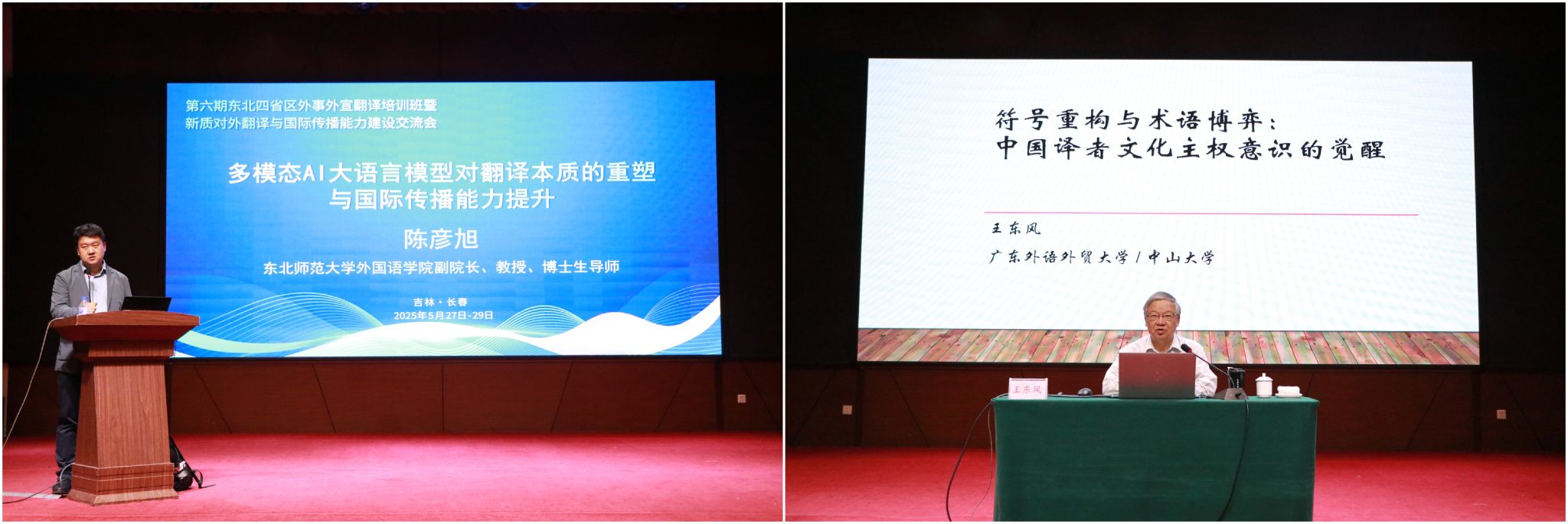 5月27日下午至5月29日,国内4位知名学者和专家为参训学员作专题培训。东北师范大学yl6776永利集团副院长陈彦旭教授作了题为《多模态AI大语言模型对翻译本质的重塑与国际传播能力提升》的专题讲座。广东外语外贸大学英语语言文化学院王东风教授作了题为《符号重构与术语博弈:中国译者文化主权意识的觉醒与实践》的专题讲座。上海一者信息科技有限公司创始人兼CEO张井作了题为《DeepSeek赋能翻译技术与国际传播的应用与实践》的专题讲座。语言桥集团翻译中心专家组社科领域专家张小琴作了题为《翻译中的政治敏感性与技术赋能》的专题讲座。