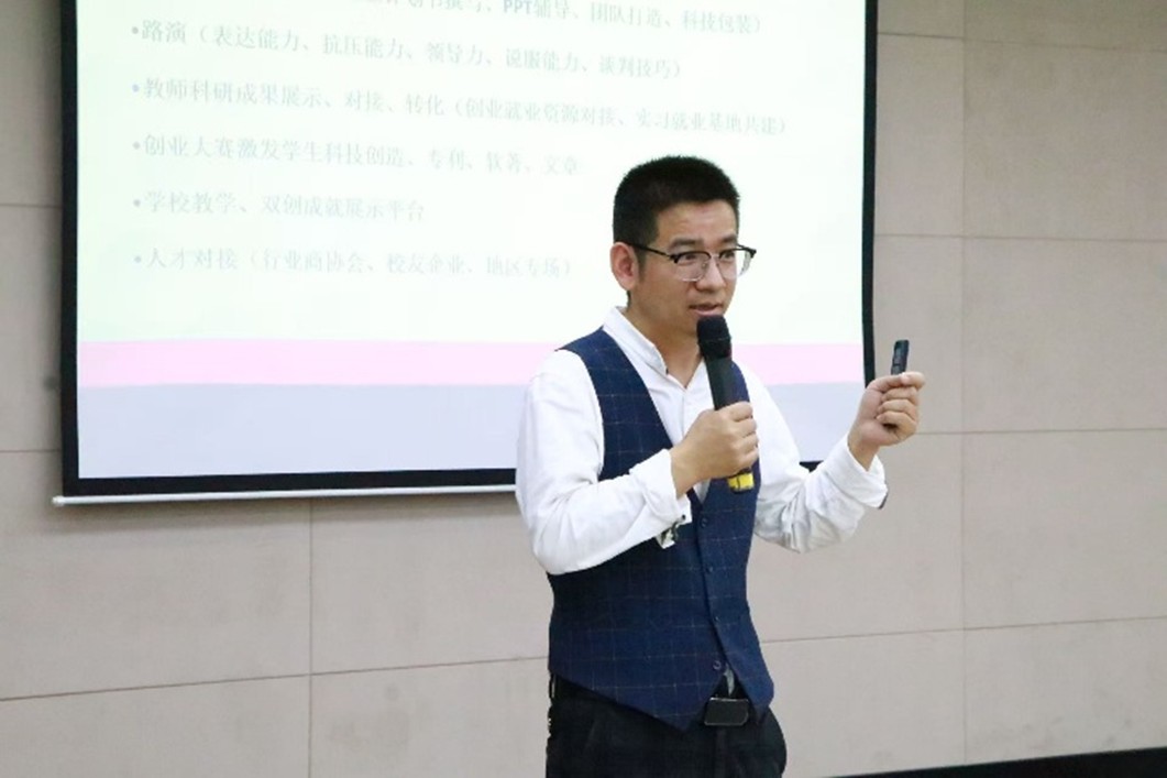本次讲座特邀吉林省创投大赛联合创始人、吉林省青年艺术家协会副秘书长、吉林省创菲克科技有限公司总经理杨志刚担任主讲嘉宾。杨志刚是我校优秀校友,长期深耕创新创业赛事指导、企业孵化培育与赛事运营管理领域,拥有十余年一线指导经验,熟悉各类创新创业赛事评分细则与备赛核心要点,曾指导多支学生团队在省级、国家级创新创业竞赛中斩获佳绩,在产学研融合、创业政策解读与项目落地孵化方面具备深厚的专业积累与实战经验。