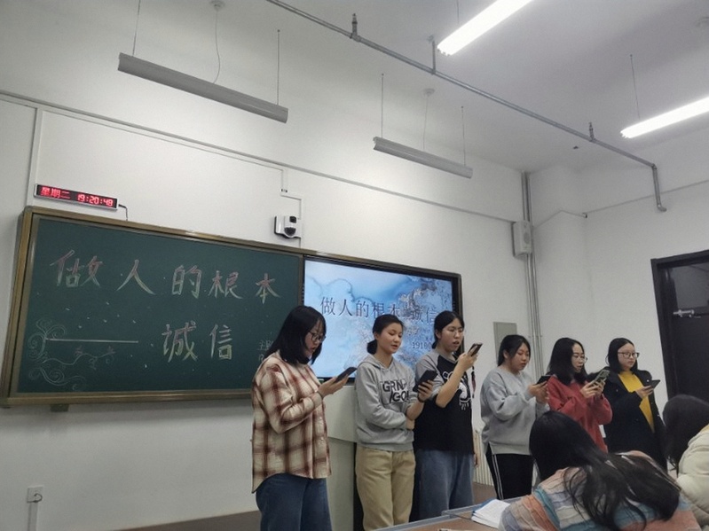 191002班曹英健同学的讲解使同学们明白了诚信的重要性,为同学们今后的学习和生活提供指导。