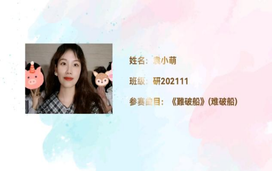 下面,让我们一起来领略一下,获得一等奖的五位同学演唱时的风采与选曲感想吧!