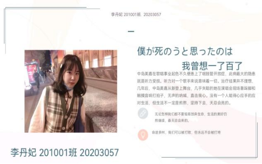 1.李丹妃 参赛作品:「僕が死のうと思ったのは」